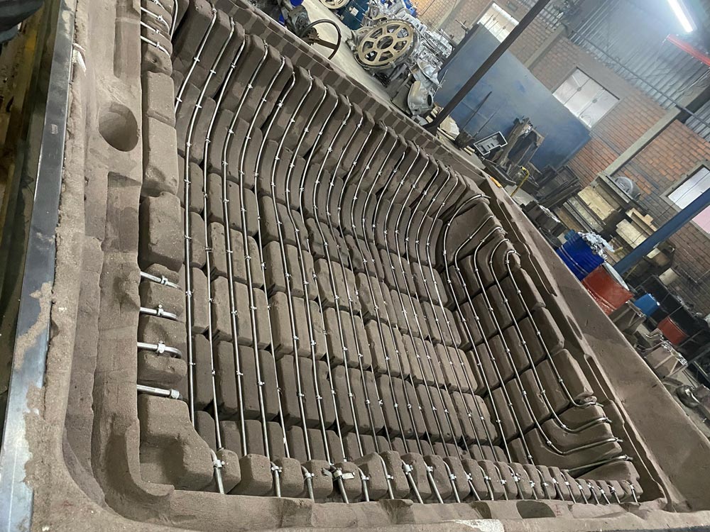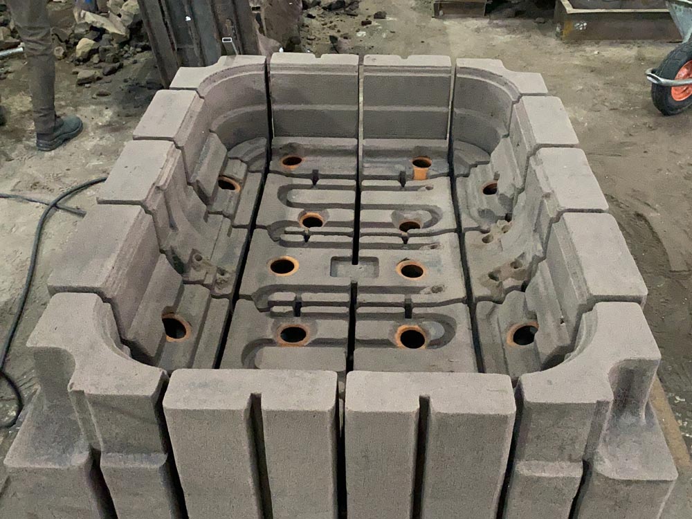 Processo de moldagem em areia com menor tempo de cura, que consiste na mistura de 2 partes de resinas e catalisador. Devido a flexibilidade do tempo de banca (tempo de moldagem), este processo nos permite desde a produção de peças pequenas, como peças de até 3.000kg.