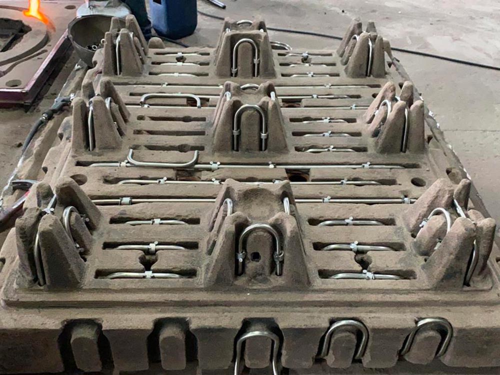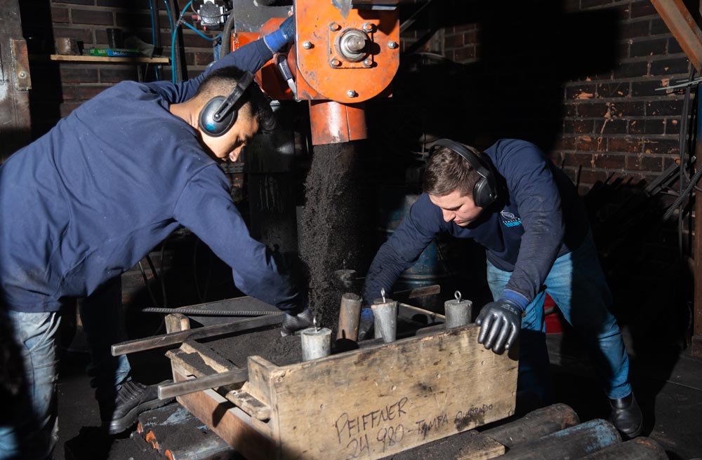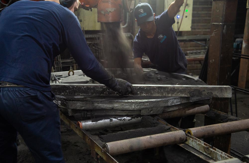 Neste setor a Fundição Rochedo está equipada com 2 linhas produtivas com misturadores contínuos de capacidade para 15ton/hora e 2 silos para 25ton.