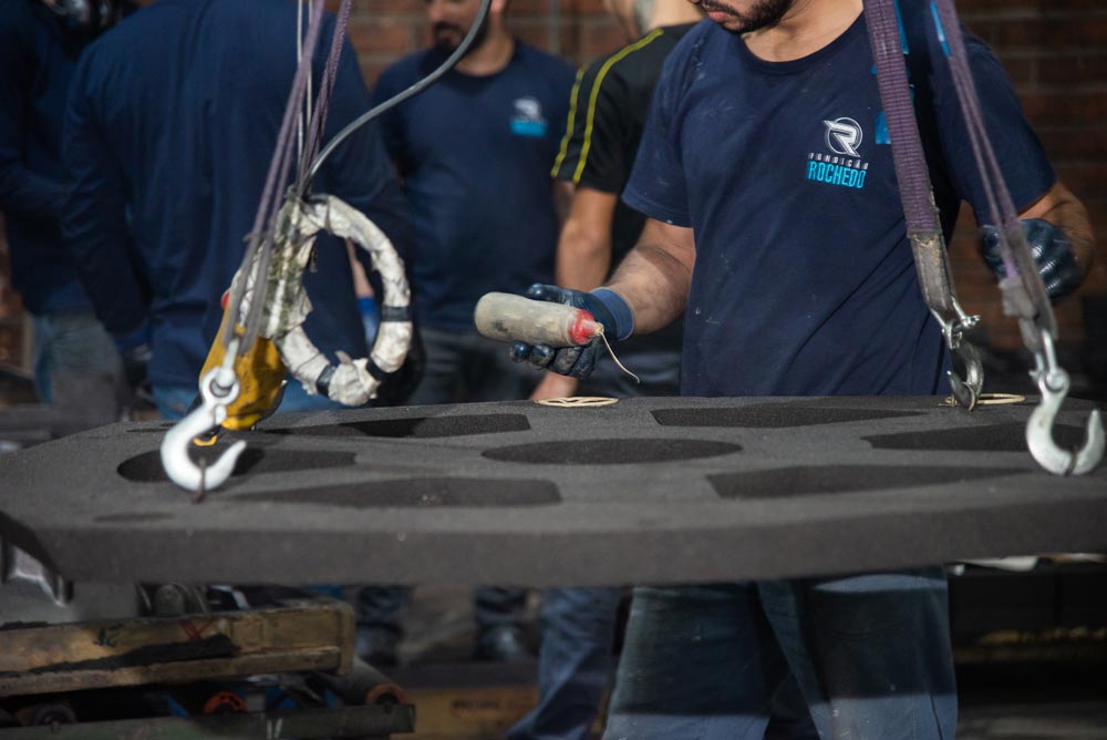 Composta por 5 fornos de poço e 2 fornos basculantes, temos capacidade de metal líquido para 3.000kg em uma única fusão de peça. Além de trabalharmos apenas com lingotes que já nos possibilitam uma qualidade melhor nas peças fundidas, neste setor a Fundição Rochedo está equipada com excelentes recursos necessários para o fornecimento de um metal líquido de excelente qualidade, como é o caso do desgaseificador (FDU) e o sistema de análise de gases (SAG).